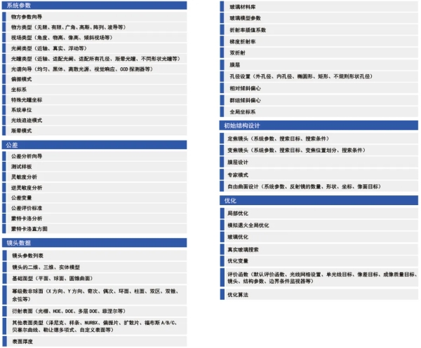 軟件中的工具部件都與設(shè)計過程中的重要步驟相符合,從而構(gòu)成了軟件中的基礎(chǔ)功能。其中分析、優(yōu)化和公差工具包含了一系列特定公差內(nèi)基于物理算法的分析、仿真、以及優(yōu)化光學(xué)系統(tǒng)。