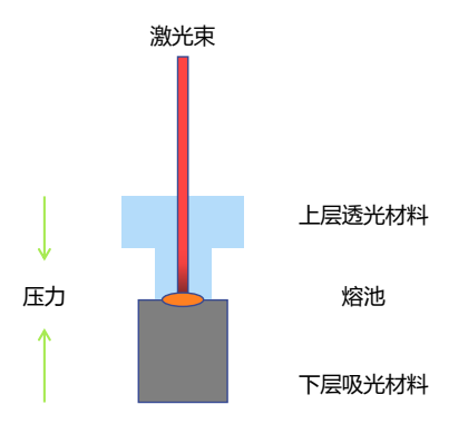 塑料激光焊接的基本原理是特定波長(zhǎng)的激光光束透過(guò)上層透光材料達(dá)到下層吸光材料表面轉(zhuǎn)換成熱量,由于在壓力的作用下,兩層材料緊密貼合,產(chǎn)生的熱量不能及時(shí)散發(fā),在兩者結(jié)合的部位聚集并迅速形成熔池。待光束停止后,持續(xù)的壓力作用下,熔池冷卻并固化,從而實(shí)現(xiàn)兩者融合焊接。