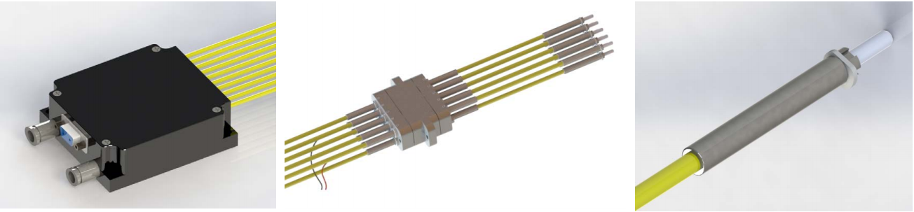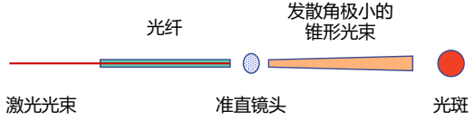 光纖將激光器發(fā)射的極細(xì)的激光束傳到至準(zhǔn)直鏡頭,由準(zhǔn)直鏡頭極細(xì)的發(fā)散型激光光束轉(zhuǎn)換為近似平行的準(zhǔn)直光,通常在40mm的距離產(chǎn)生5mm直徑的較均勻光斑。