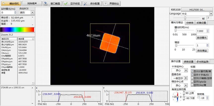 6. 測量光斑的長短軸、橢圓率、旋轉(zhuǎn)角等參數(shù)