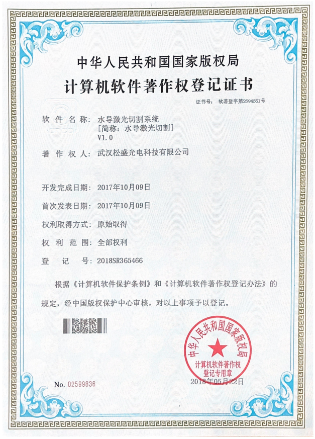 軟件名稱:水導(dǎo)激光切割系統(tǒng)[簡稱:水導(dǎo)激光切割]V1.0